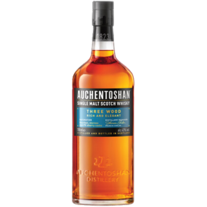 This award-winning Auchentoshan Single Malt Scotch Whisky has been matured in three different cask types. From American Bourbon to Spanish Oloroso Sherry and then, finally, Pedro Ximenez Sherry casks this a rich, complex whisky with toffee and sherry flavours. Three Wood makes a cracking Auchentoshan & Ale, a mean Old Fashioned and a damn fine dram in its own right.