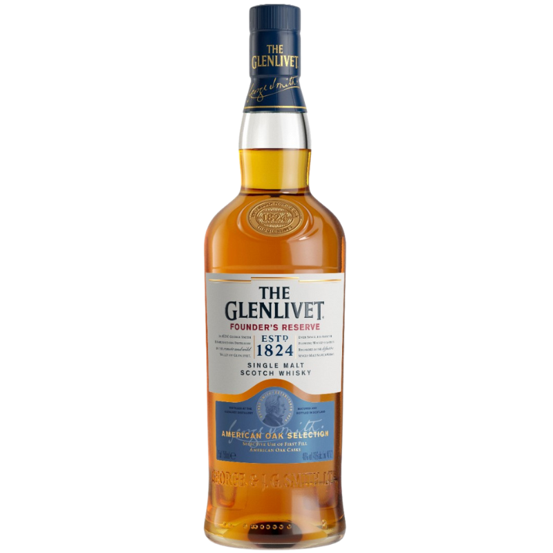 Boasting the classic flavours of The Glenlivet bound up in a creamy, smooth texture, The Glenlivet Founder’s Reserve single malt whisky is a tribute to George Smith, the founder of the distillery. When he began distilling, The Glenlivet had no age statements, selecting whisky from casks of a range of ages. This expression replicates that freedom, blending whisky from a variety of traditional aged oak casks. (Single Malt)